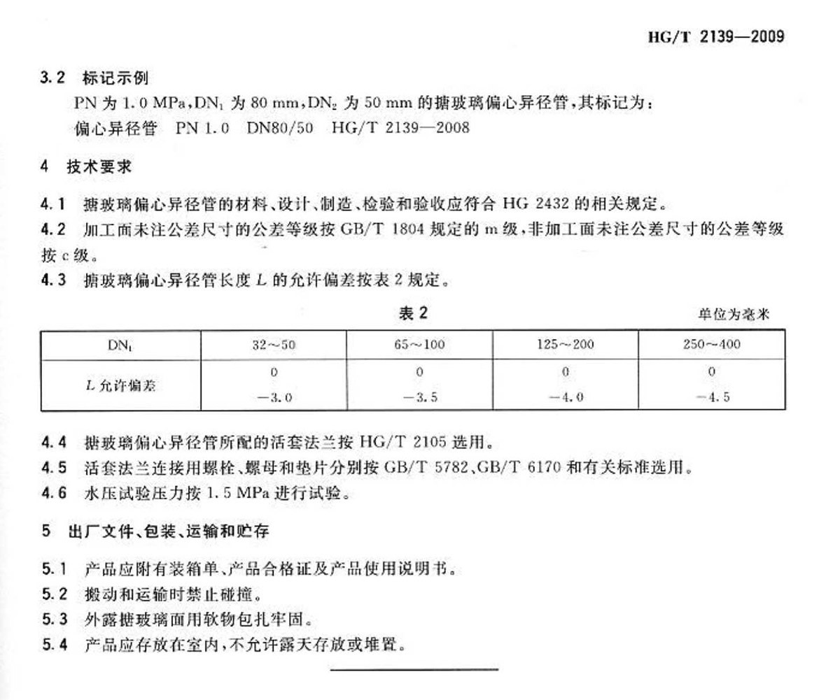 HGT2139-2009搪玻璃偏心異徑管