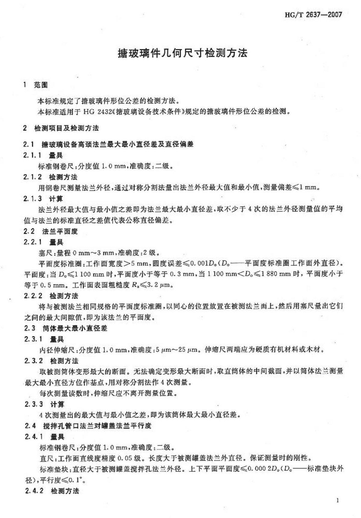 HG-T-2637-2007搪玻璃件幾何尺寸檢測(cè)方法